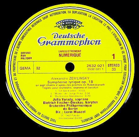 商品コード:1192-042b[DGG] L.マゼール指揮ベルリンpo. J.ヴァラディ(s) D.フィッシャー・ディースカウ(br) / ツェムリンスキー:抒情交響曲Op.18