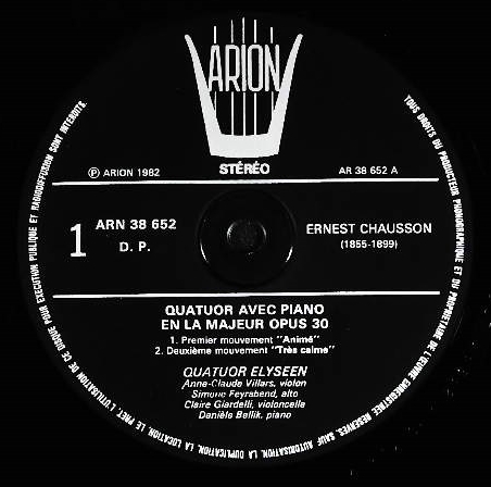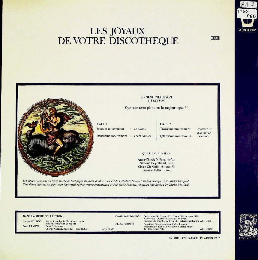 商品コード:1192-060[ARION] エリゼPf四重奏団 / ショーソン:Pf四重奏曲Op.30