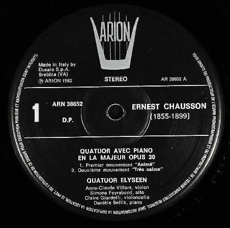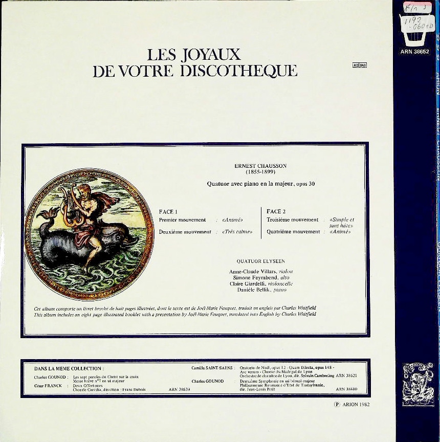 商品コード:1192-060tb[ARION] エリゼPf四重奏団 / ショーソン:Pf四重奏曲Op.30