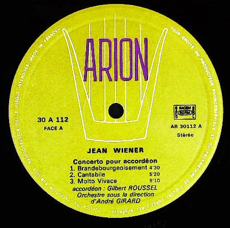 商品コード:1192-064[ARION] G.ルーセル(アコーディオン) J.ウィエネ(pf) A.ジラール指揮o. / ウィエネ:アコーディオン協奏曲, Pf協奏曲