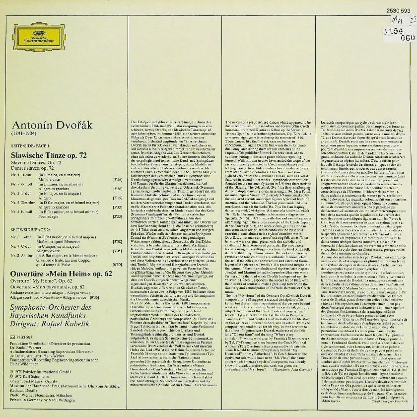 商品コード:1194-060[DGG] R.クーベリック指揮バイエルン放送so. / ドヴォルザーク:スラブ舞曲Op.72, 序曲「わが故郷」Op, 62