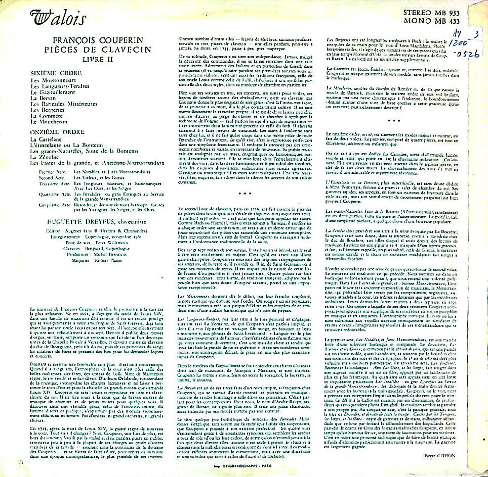 商品コード:1200-052b[VALOIS] H.ドレフュス(cemb) / クープラン:クラヴサン曲集第2巻~第6組曲, 第11組曲