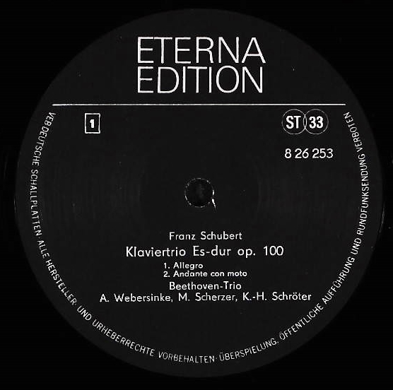 商品コード:1200-008tb[ETERNA] ベートーヴェン・トリオ(A.ウェーバージンケ(pf) M.シェルツァー(vn) K.H.シュレーター(vc)) / シューベルト:Pfトリオ2番Op.100