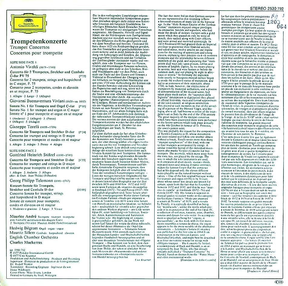 商品コード:1203-064[DGG] M.アンドレ(tp) C.マッケラス指揮イギリス室内o. H.ビルグラム(org) M.シレム(cemb) / Tp協奏曲集/ヴィヴァルディ, ヴィヴィアーニ, トレッリ, シュテルツェル, テレマン