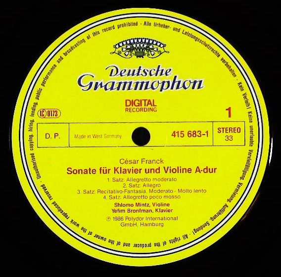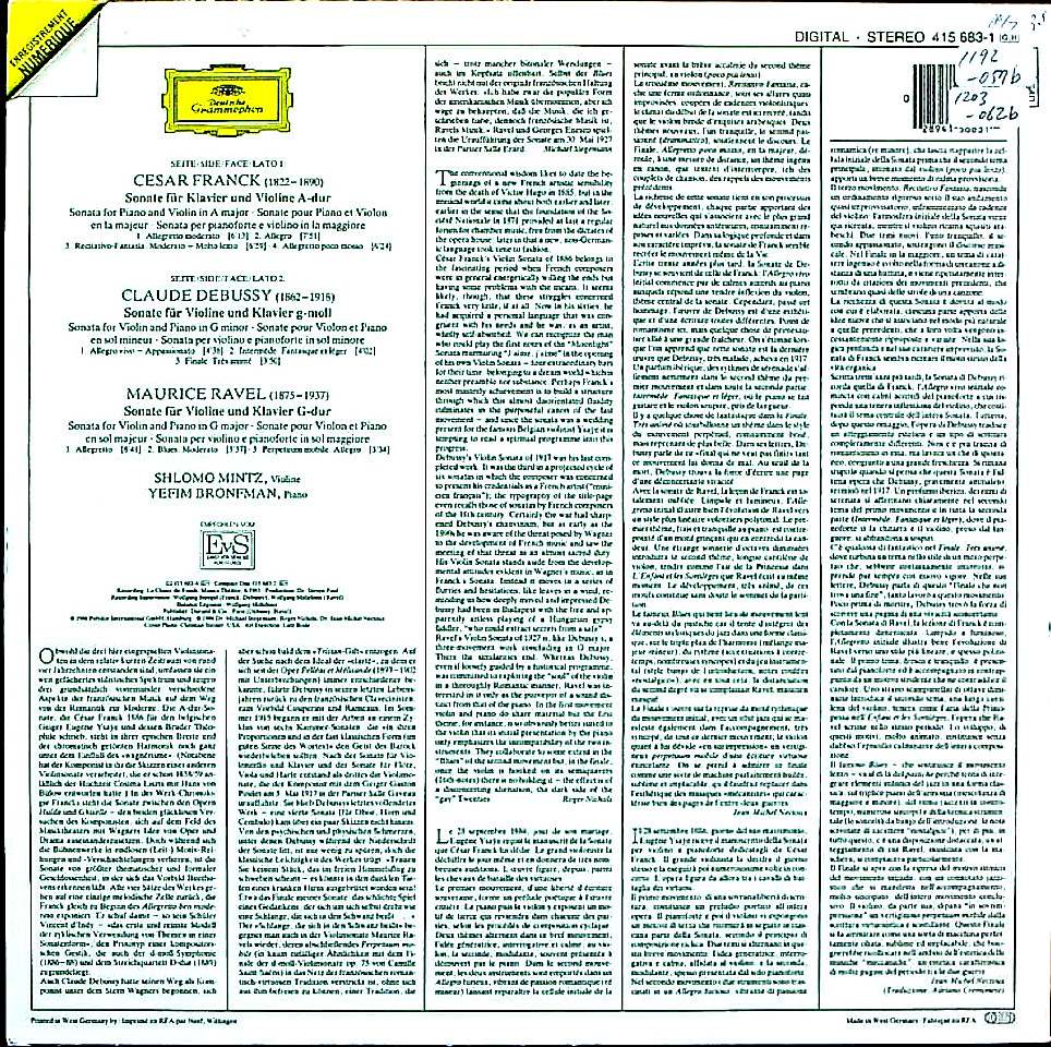 商品コード:1203-062b[DGG] S.ミンツ(vn) Y.ブロンフマン(pf) / フランク:Vnソナタ, ドビュッシー:Vnソナタ, ラヴェル:Vnソナタ