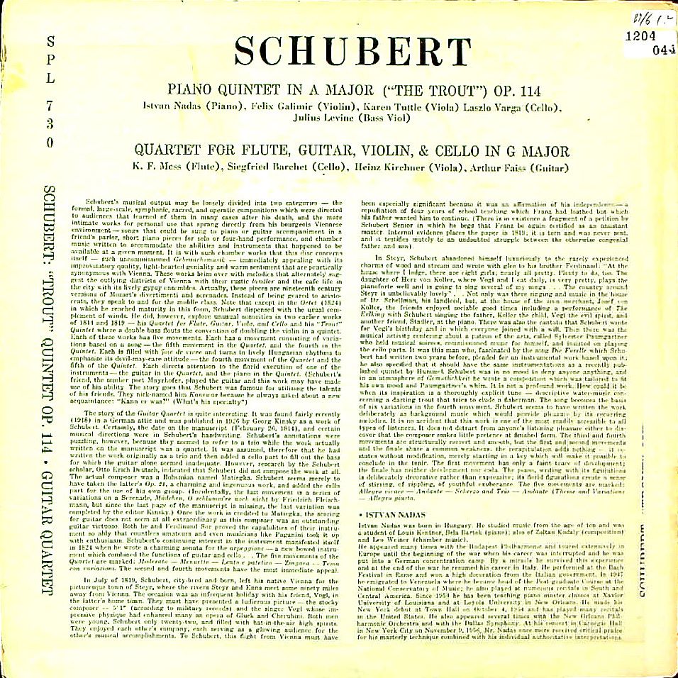 商品コード:1204-044[PERIOD] I.ナーダシュ(pf) ガリミールQt.メンバー 他 / シューベルト:Pf五重奏曲「鱒」Op.114 D667, ギター四重奏曲D.96 (原曲:W.マティーカの「ノットゥルノ Op. 21」)