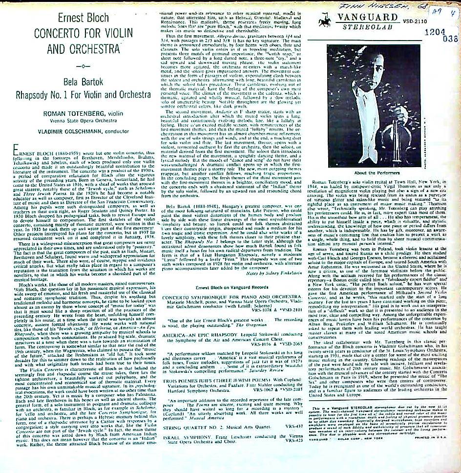 商品コード:1204-038[VANGUARD] R.トーテンベルク(vn) W.ゴルシュマン指揮ウィーン国立歌劇場o. / ブロッホ:Vn協奏曲, バルトーク:狂詩曲1番