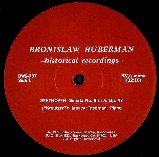 商品コード:1204-036b[DISCOCORP] B.フーベルマン(vn) I.フリードマン, B.ロウバキネ(pf)/ ベートーヴェン:Vnソナタ9番「クロイツェル」, シューベルト:幻想曲