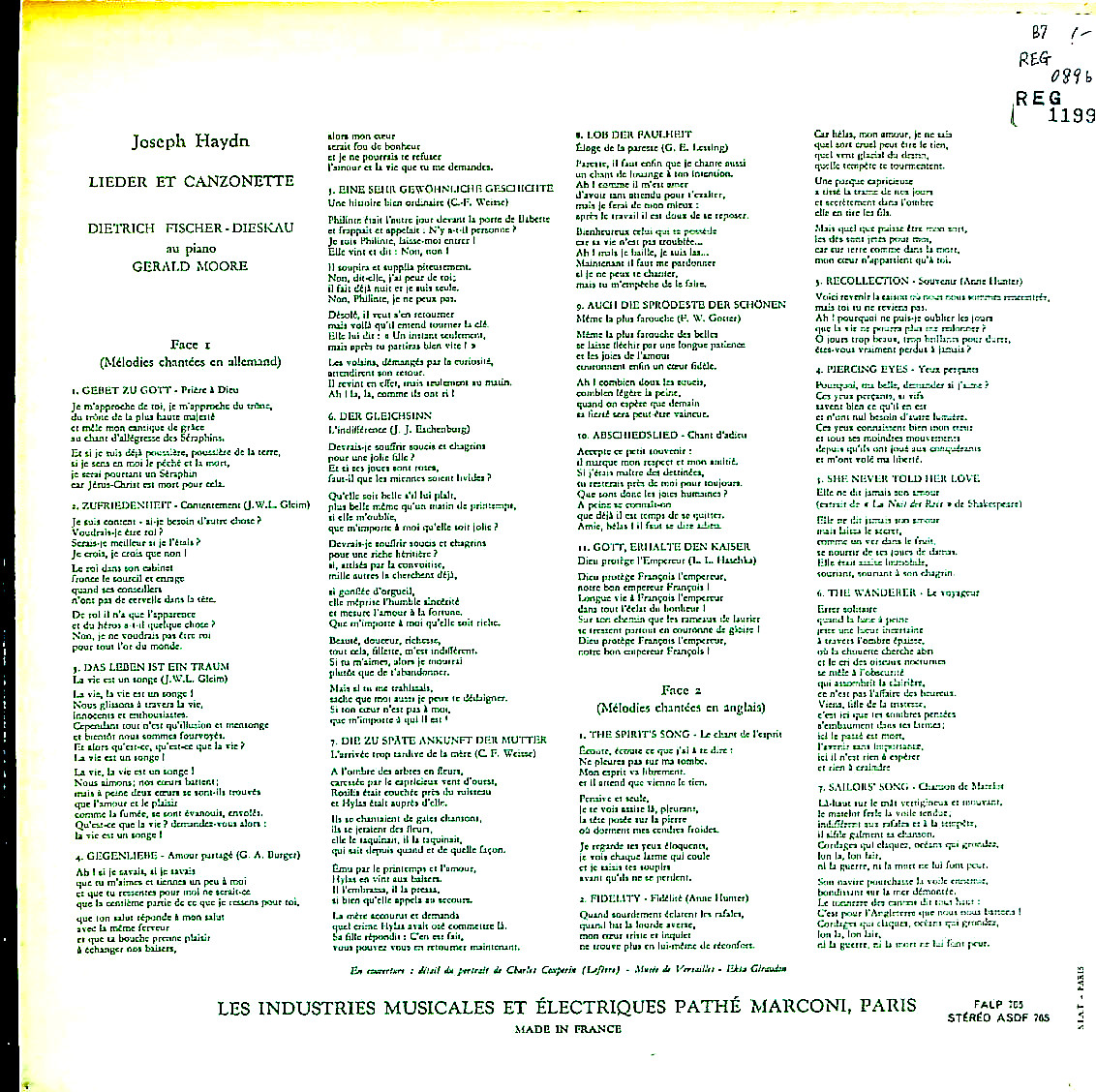 商品コード:REG-1199[仏La Voix De Son Maître] D.フィッシャー・ディースカウ(br) G.ムーア(pf) / ハイドン:歌曲・カンツォネッタ集(全18曲)