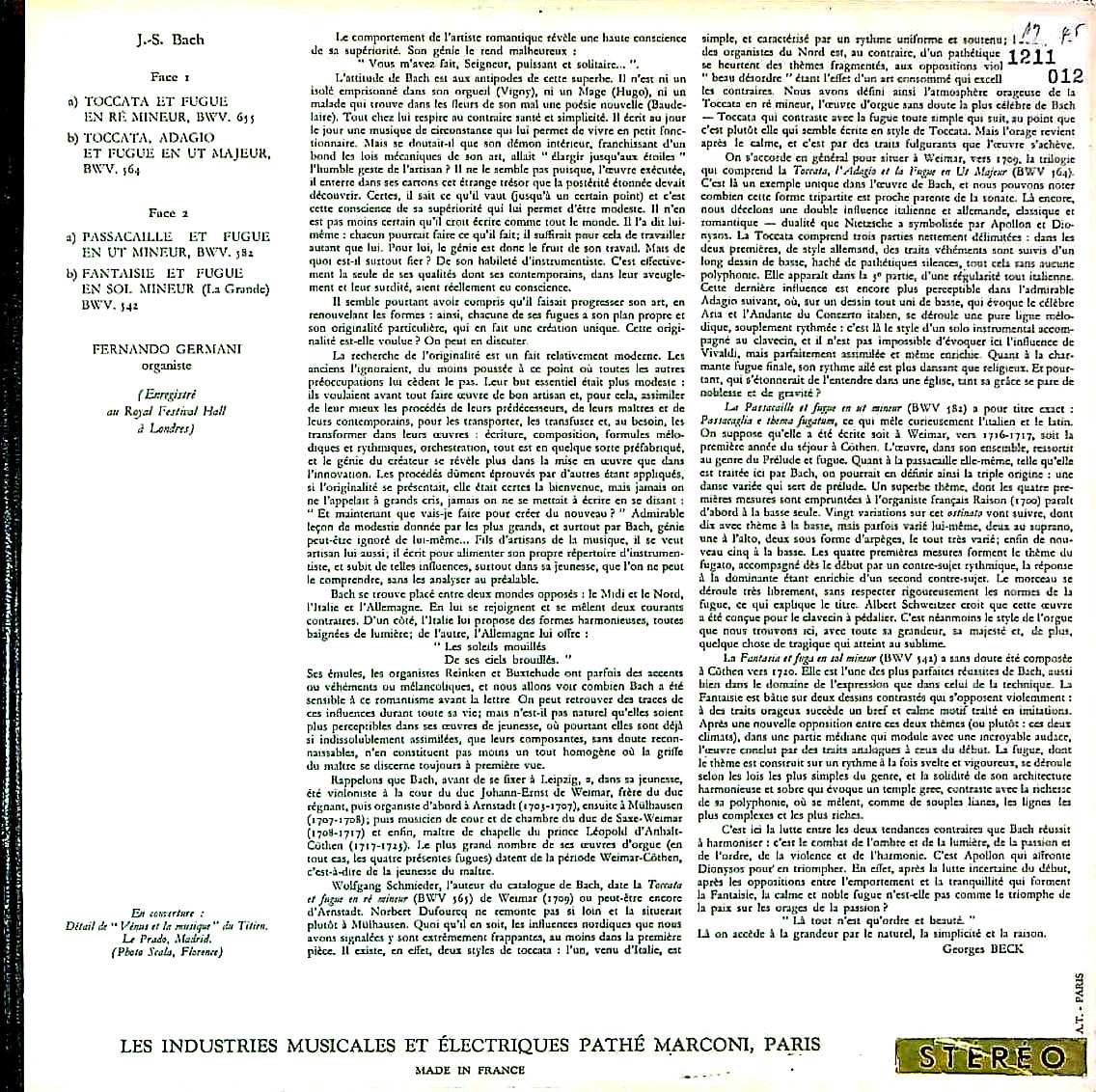 商品コード:1211-012[La Voix De Son Maître] F.ジェルマーニ(org) / バッハ:オルガン作品集