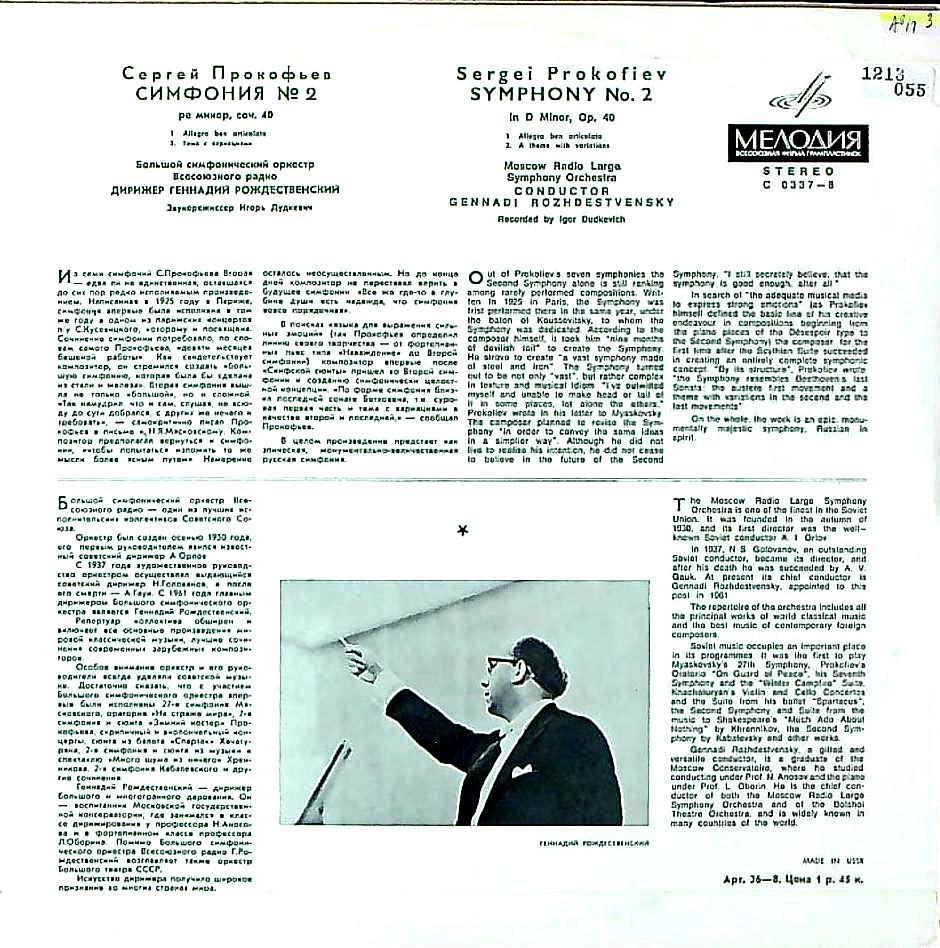 商品コード:1213-055n[MELODIYA] G.ロジェストヴェンスキー指揮ソビエト放送o. / プロコフィエフ:交響曲2番Op.40