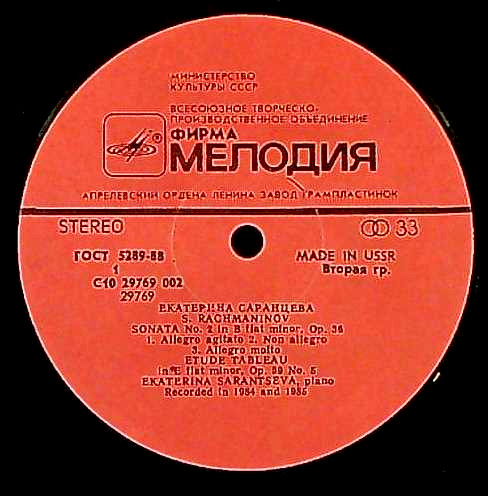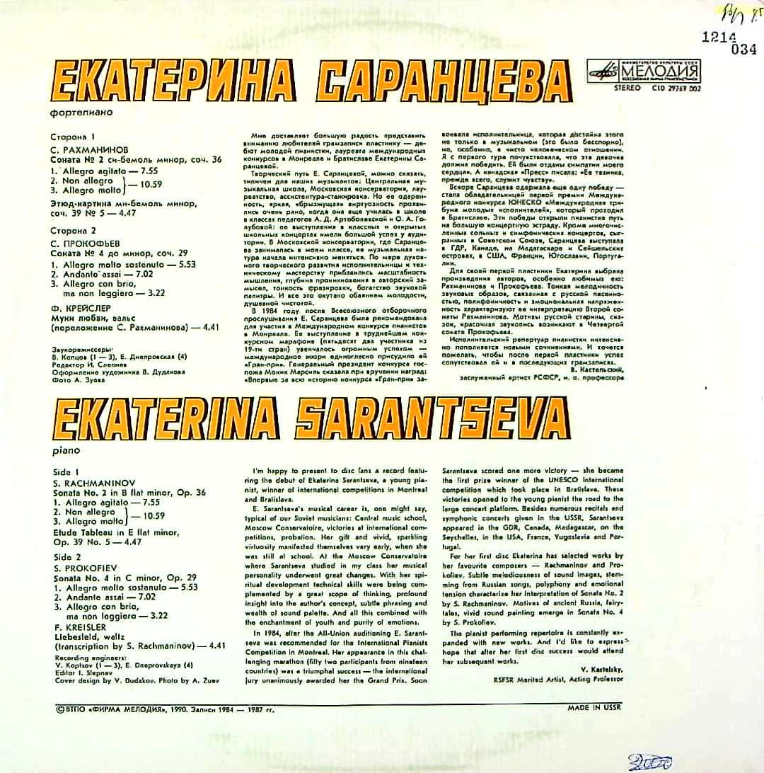 商品コード:1214-034n[MELODIYA] E.サランツェワ(pf) / ラフマニノフ:Pfソナタ2番Op.36、絵画的練習曲Op.39-5, プロコフィエフ:Pfソナタ4番Op.29, クライスラー(ラフマニノフ編):愛の悲しみ