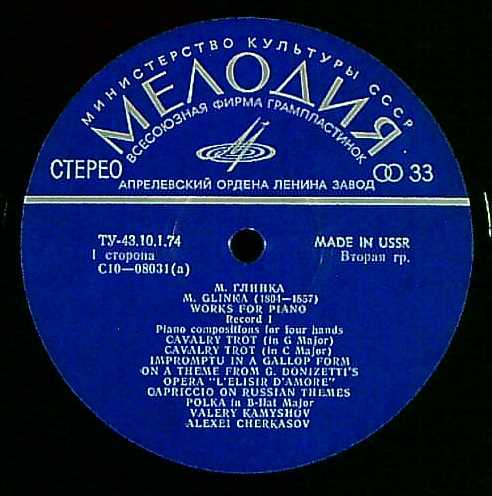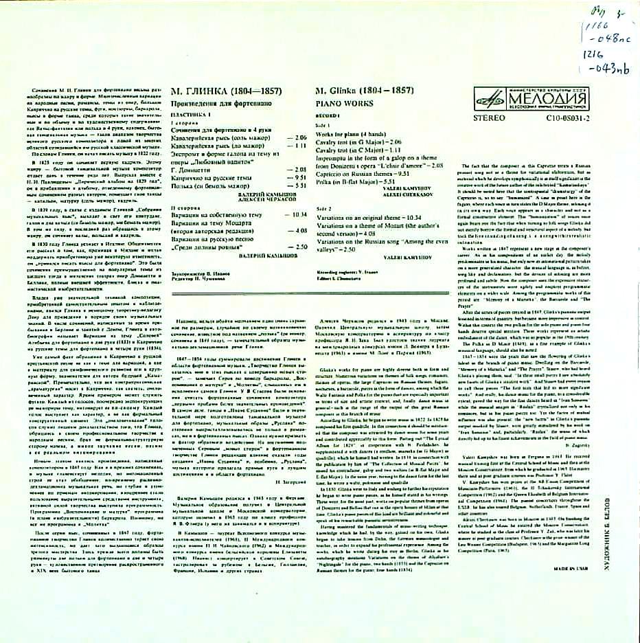 商品コード:1216-043nb[MELODIYA] V.カミショフ A.チェルカーソフ(pf) / グリンカ:Pf作品集Vol.1/変奏曲(3曲), 連弾曲集