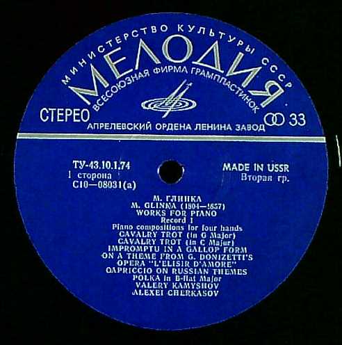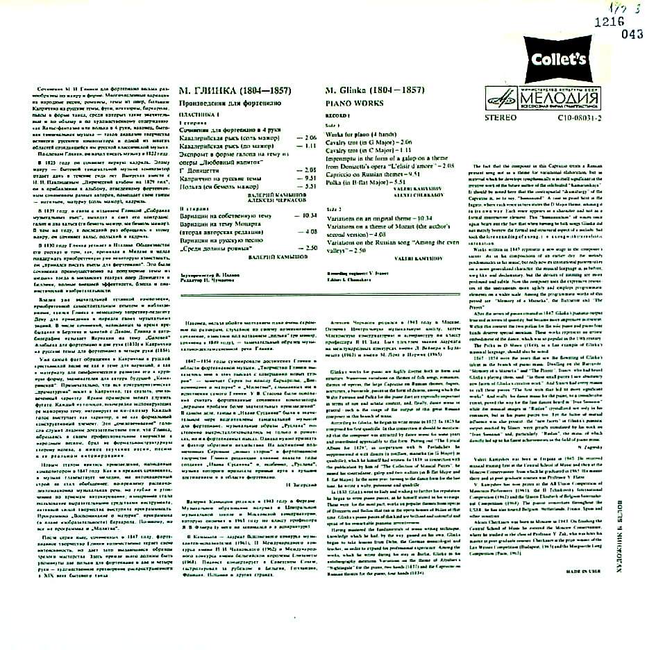商品コード:1216-043n[MELODIYA] V.カミショフ A.チェルカーソフ(pf) / グリンカ:Pf作品集Vol.1/変奏曲(3曲), 連弾曲集