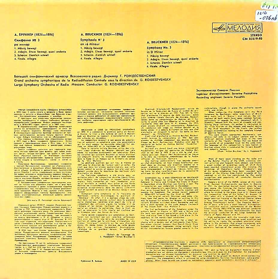 商品コード:1216-036nb[MELODIYA] G.ロジェストヴェンスキー指揮ソビエト放送o. / ブルックナー:交響曲3番(改訂版)