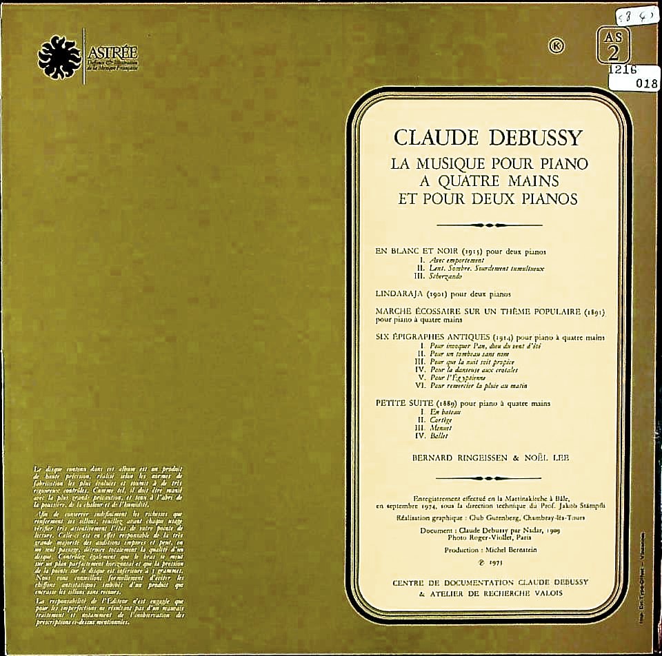 商品コード:1216-018[ASTRÉE] B.ランジェサン, N.リー(pf) / ドビュッシー:連弾作品集