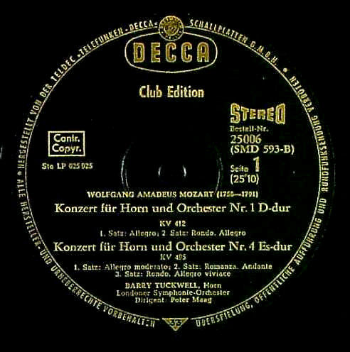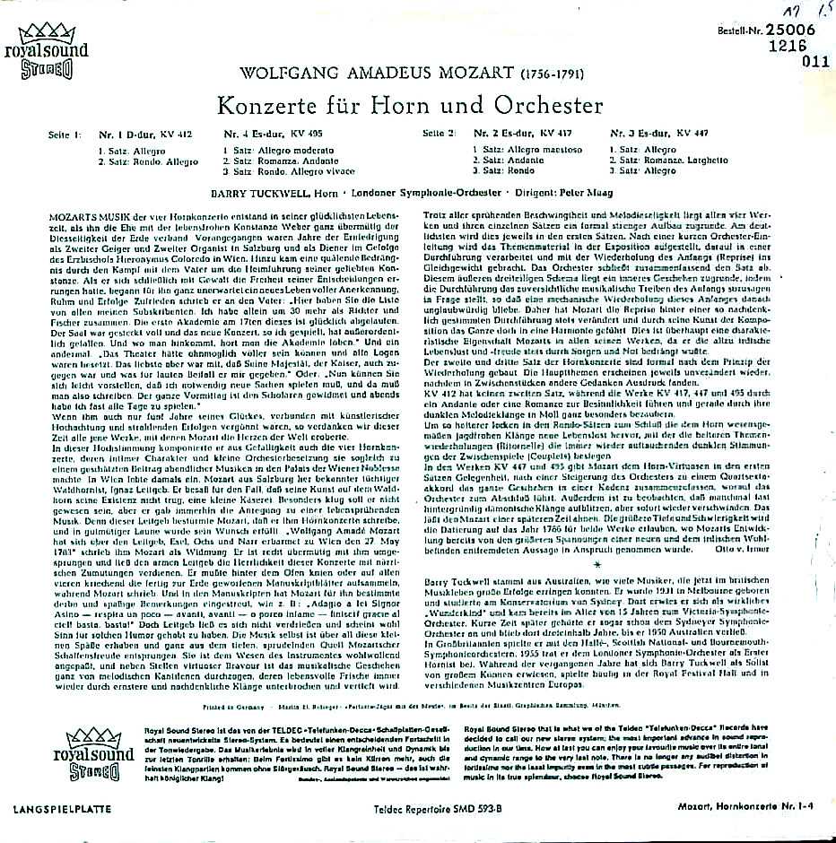 商品コード:1216-011[DECCA] B.タックウェル(hr) P.マーク指揮ロンドンso. / モーツァルト:Hr協奏曲(全4曲)