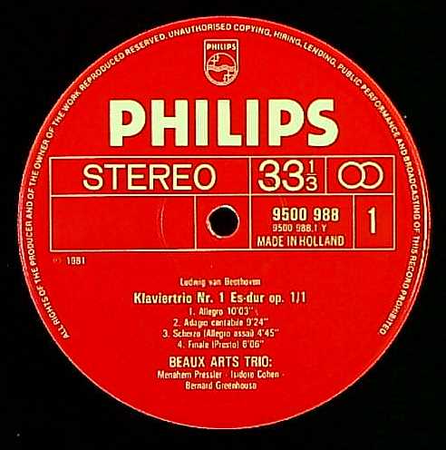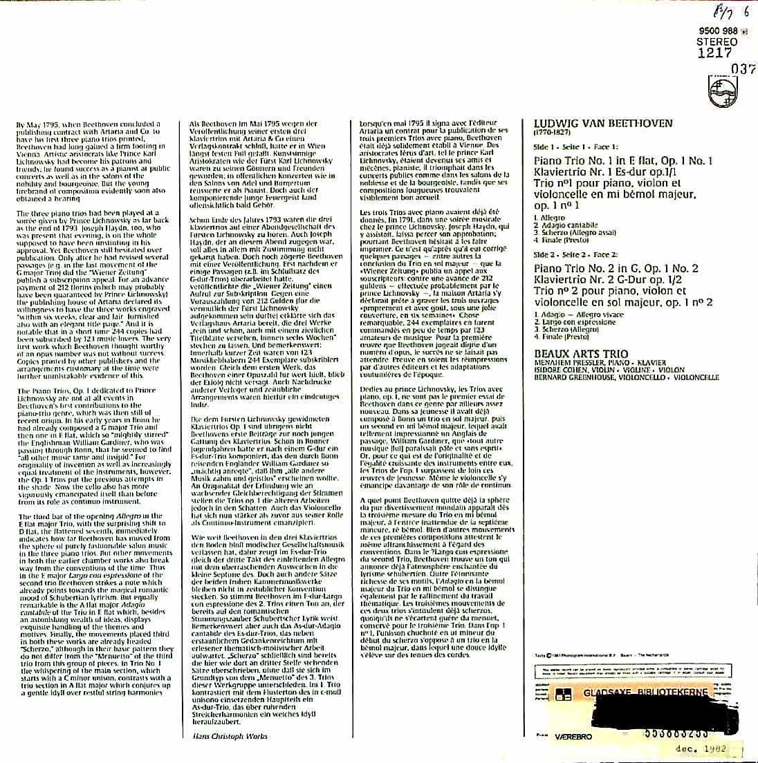 商品コード:1217-037[PHILIPS] ボザール・トリオ/ ベートーヴェン:Pfトリオ1番Op.1-1, Pfトリオ2番Op.1-2