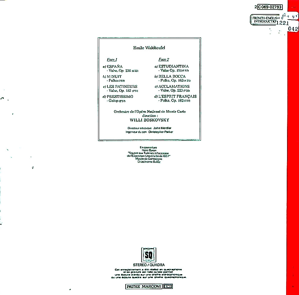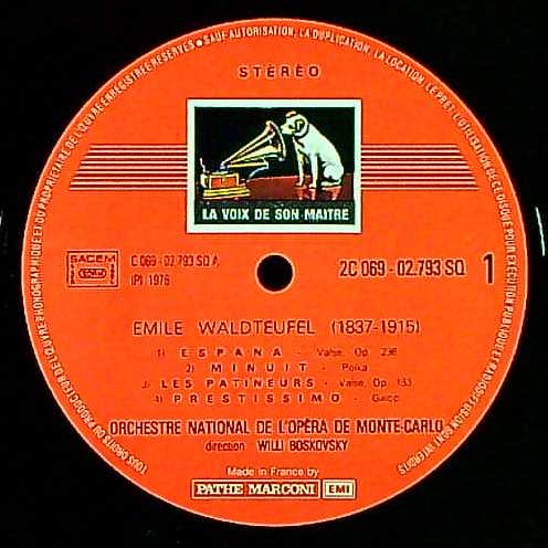 商品コード:1221-042[La Voix De Son Maître] W.ボスコフスキー指揮モンテカルロ国立歌劇場o. / ワルトトイフェル:ワルツ集-1(全8曲)