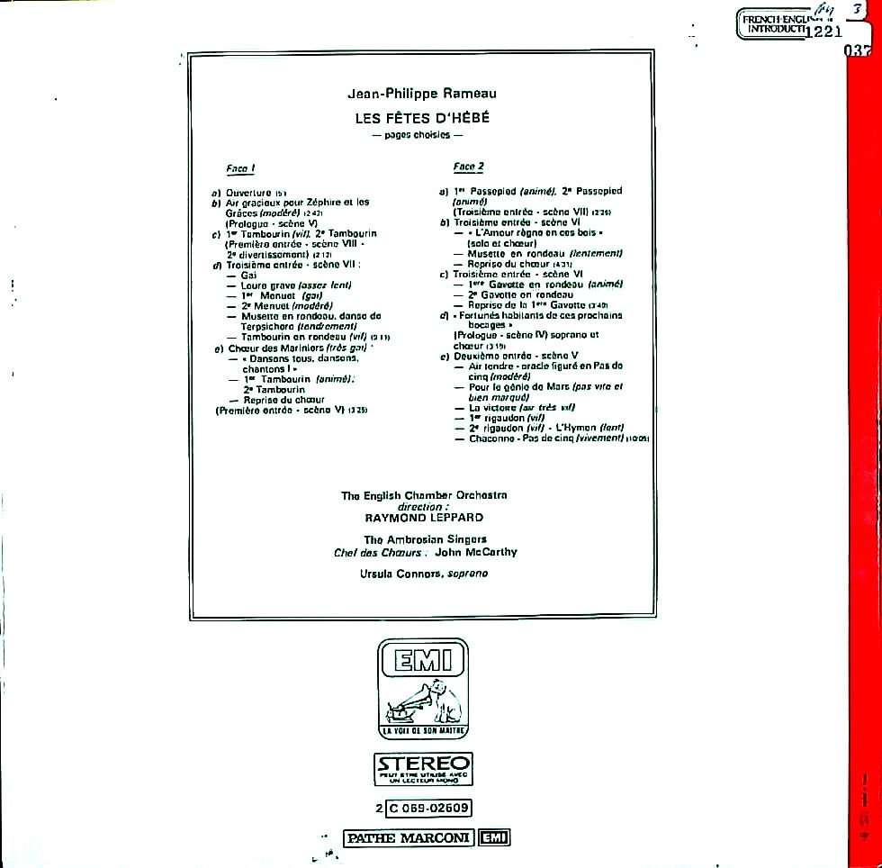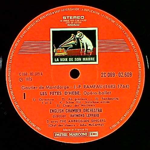 商品コード:1221-037[La Voix De Son Maître] R.レッパード指揮イギリス室内o. アンブロジアン・シンガーズ, U.コナーズ(s) / ラモー:オペラ・バレエ音楽「エベの祭典」(ハイライト)