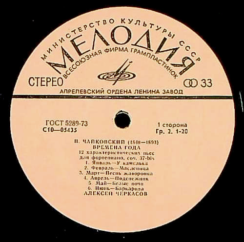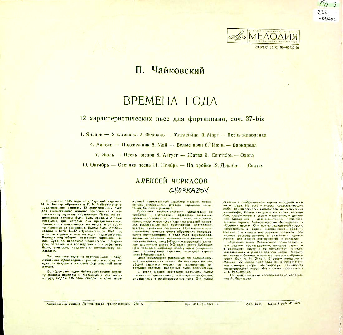 商品コード:1222-054pc[MELODIYA] A.チェルカソフ(pf) / チャイコフスキー:四季Op.37a