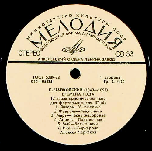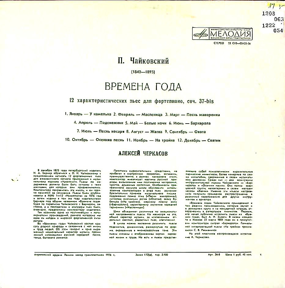 商品コード:1222-054n[MELODIYA] A.チェルカソフ(pf) / チャイコフスキー:四季Op.37a