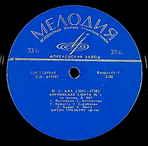 商品コード:1222-049p[MELODIYA] A.ギンズブルグ(pf) / バッハ:イギリス組曲2番B.807 , バルトーク:ピアノ小品(6曲), 組曲Op.14