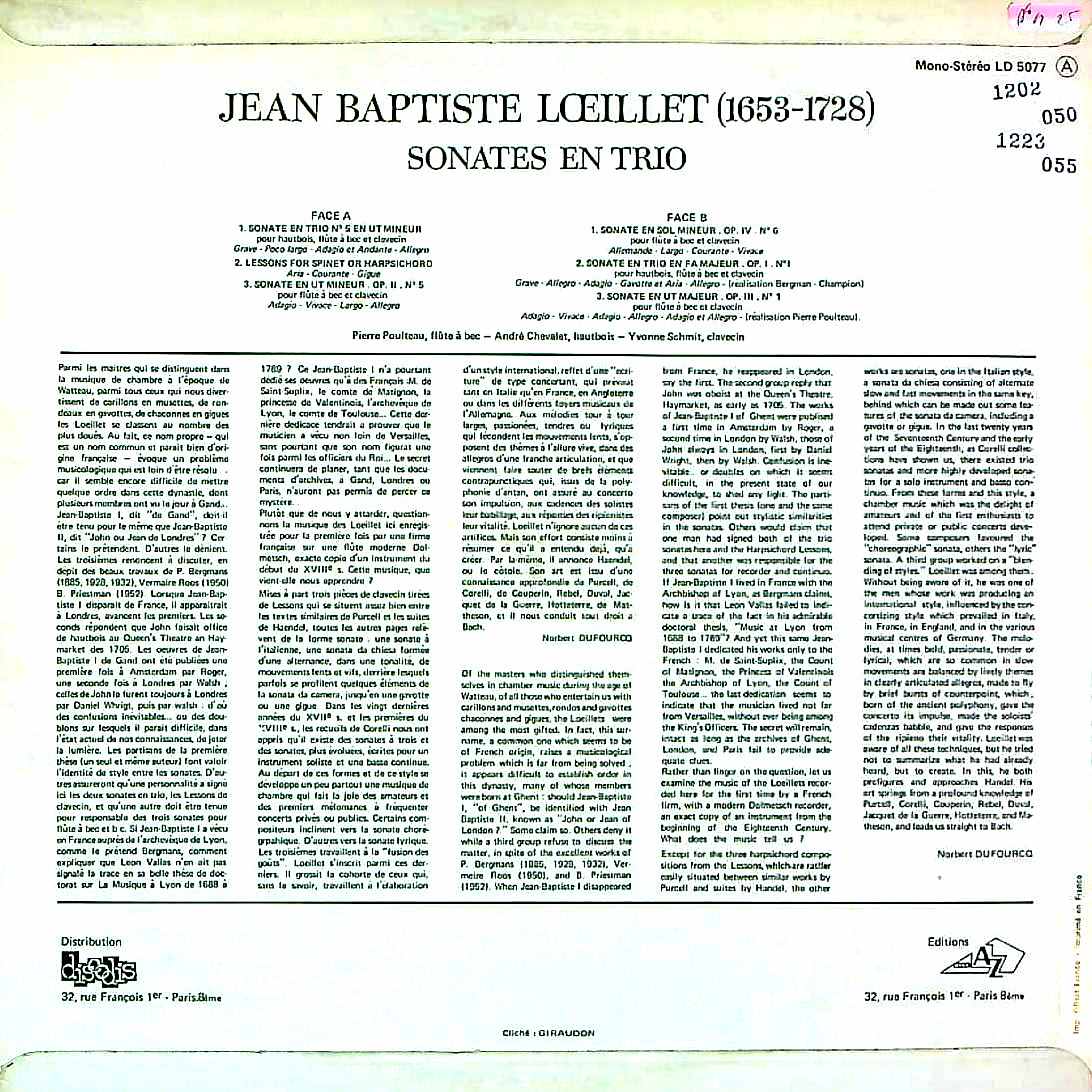 商品詳細:ジャン=バティスト・ルイエには二人の親類(いとこ)が居てどちらもジャン=バティスト・ルイエである。ジャケット裏の生年月日が今日のものと合わないので100%ではないが、ここで演奏されるルイエはフランス在住だったジャン=バティスト・ルイエ・ド・ガン( 1688– 1720)と思われる。もう一人はロンドン在住だったジャン=バティスト・ルイエ・ド・ロンドル ( 1680 - 1730)でロンドンのルイエと呼ばれる。どちらも、スペイン領ネーデルラント(現ベルギー)のヘント(ド・ガン)出身の作曲家。現在では単にルイエはジャン=バティスト・ルイエ・ド・ガン(フランスのルイエ)を指すようである。リヨン大司教ポール=フランソワ・ド・ヌイヴィル・ド・ヴィルロワに仕える。数多くのフルート作品を手掛け、トリオ・ソナタや2本のフルートのための無伴奏ソナタ、フルート・ソナタがある。1710年から1717年にかけてアムステルダムで、しめて48曲のリコーダー・ソナタが出版されており、後にこれらはロンドンでウォルシュ社により1712年から1722年にかけて再版された。ここでは5曲のリコーダーを含むトリオ・ソナタ2曲とリコーダーとチェンバロのソナタが3曲、チェンバロ独奏曲1曲の計6曲を収録。メンバーは日本では殆ど無名のリコーダー:ピエール・プルトー、オーボエ:アンドレ・シュバレ、チェンバロ:イヴォンヌ・シュミットの3人である。1960年頃の録音と思われ、音質は伸びやかで明るく、フレンチ・バロックとして申し分のない音質である。演奏はリコーダー(フルート・ア・ベック/ブロック・フレーテ/縦笛)のプルトーが中心となる。古楽器を用いると思われ、自然で木質系の音が印象的である。トリオ・ソナタではリコーダー、オーボエ、チェンバロという珍しい構成となる。弦楽器は入らない。これがルイエが作曲したオリジナルの構成なのか、このLPのための構成なのか不明だが、フレンチ・バロックを心地よく楽しめる演奏である。ドイツ系のトリオ・ソナタといえば2Vn・Vc(Gamb)・Cemb(org)が一般的なのでこれはかなり雰囲気が異なる。木管2本のトリオ・ソナタもなかなか良いものである。フレンチ・バロックに強いBAMならではの録音。
