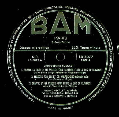 商品コード:1223-055t[BAM] P.プルトー(fl) A.シュヴァレ(ob) Y.シュミット(cemb) / ルイエ:室内楽作品集