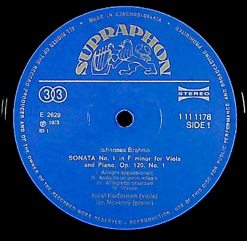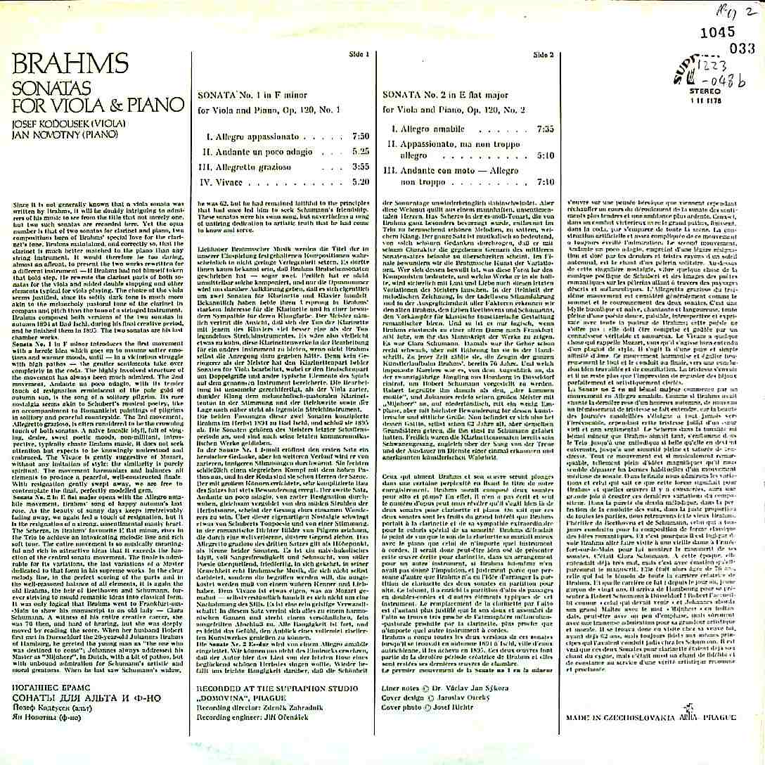 商品コード:1223-048b[SUPRAPHON] J.コドウセク(va) J.ノヴォトニー(pf) / ブラームス:Vaソナタ1番Op.120-1, Vaソナタ2番Op.120-2