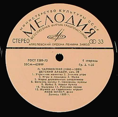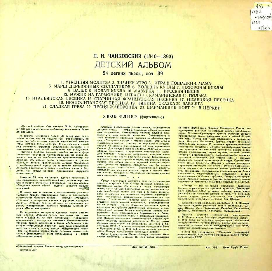 商品コード:1224-059nb[MELODIYA] Y.フリエール(pf) / チャイコフスキー:子供のアルバムOp.39