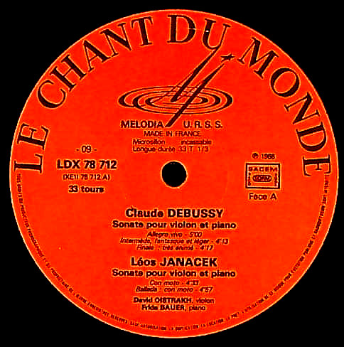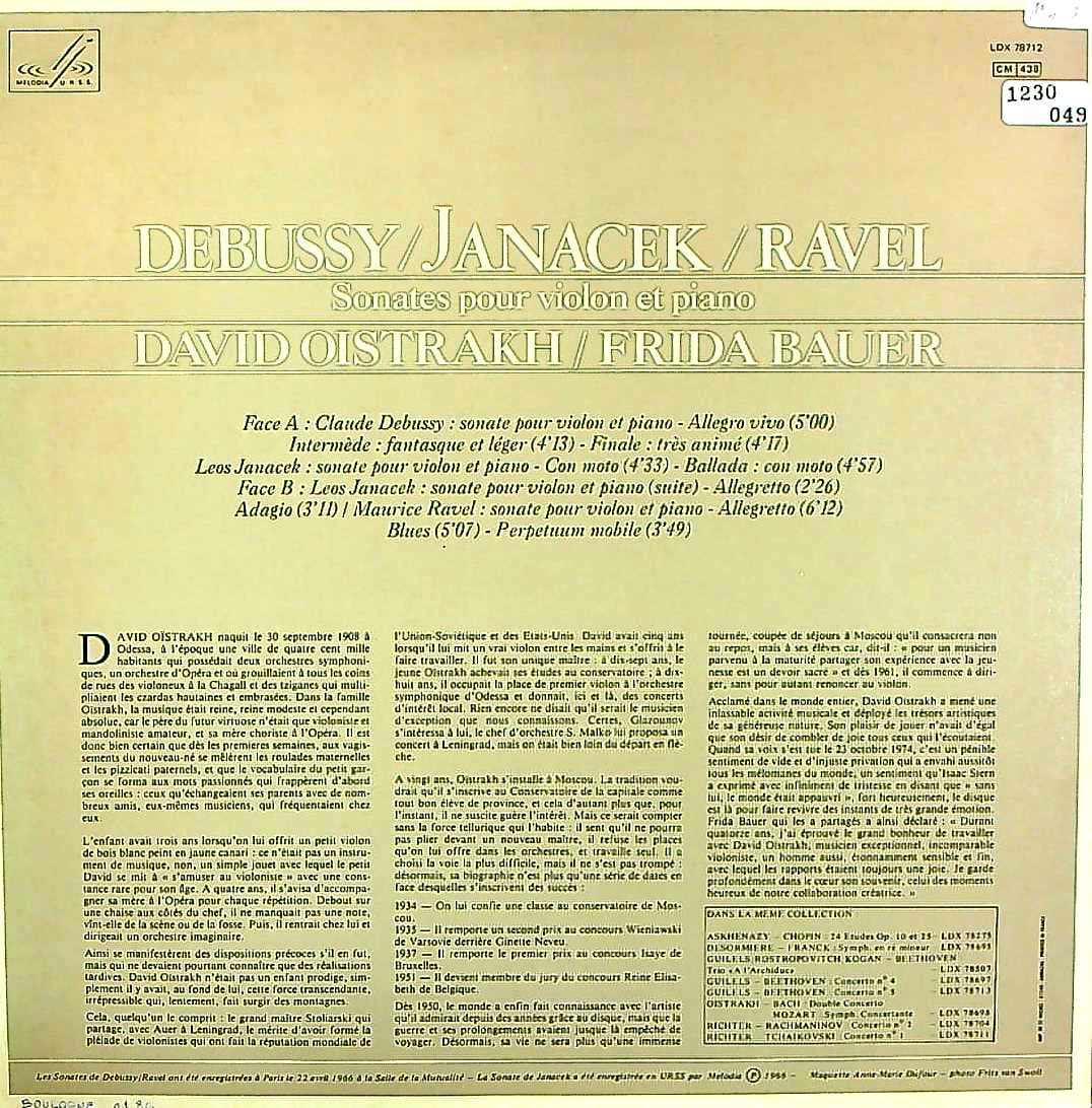 商品コード:1230-049[Le Chant du Monde] D.オイストラフ(vn) F.バウアー(pf) / ドビュッシー:Vnソナタ・ト短調, ヤナーチェク:Vnソナタ 変イ短調, ラヴェル:Vnソナタ・ト長調
