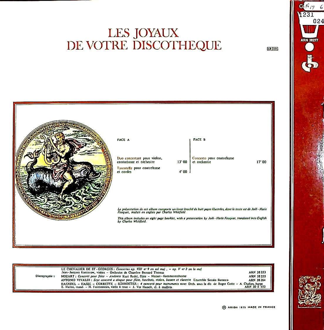 商品コード:1231-024[ARION] J.M.ロレ(cb) G.ジャリ(vn) A.ジラール指揮フランス放送室内o. / ボッテジーニ:協奏的二重奏曲, タランテラ, Cb協奏曲2番