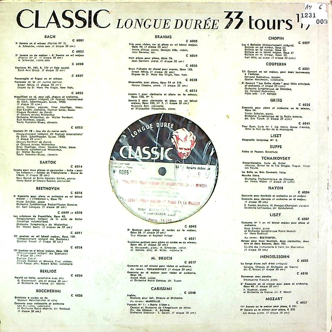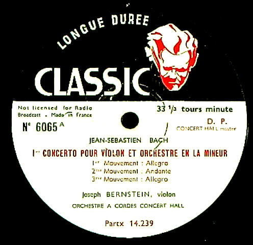 商品詳細:ヨシフ・ベルンシュタイン(1914-1976)が正しい発音であるか不明だがモルドバ、バルティの生まれ。、ウィーンアカデミーでロゼに師事した。その後、彼はカール・フレッシュとジョージ・エネスクの助手として活動。1937年までヨーロッパ中でコンサートで活動していた。1937年、彼は新しく結成されたパレスチナフィルハーモニー管弦楽団(後にイスラエルフィルハーモニー管弦楽団となる)に最初のバイオリニストおよびソリストとして参加し、その後テルアビブ弦楽四重奏団を設立。第二次世界大戦後、彼はアメリカに移住し市民権を得る。ニューヨーク・フィルハーモニック管弦楽団の長年の功績と称賛を受けたアシスタントコンサートマスターを務めた。米国では彼はソリストとして、また室内楽の演奏にも広く出演した。録音は非常に少なく、当社の入荷履歴には1件も当たらない。知られた録音はこのLPのみで、1950年ニューヨーク録音発売の米コンサートホールソサエティ:CHC-40だけと思われる。フランスでは幸いにもパテ・プレスでCLASSICレーベルから発売されており、音質の点では問題ない。A面はバッハのVn協奏曲1番B.1041、B面がヴィヴァルディのVn協奏曲が1曲とソナタ1曲という構成。当社では初入荷の珍しい録音で、指揮者なしのコンサートホールストリングオーケストラがオケである。Forgotten Recordsなる復刻専門のCDメーカーからもCDで発売されているらしい。古い録音だが様式的には近代的な演奏でベルンシュタインのソロは非常にナイーヴ。録音技術の問題かややソロが遠く音が小さめではあるが、饒舌であることはよく伝わる。録音したレーベルの人気の点から欧州と日本では完全に無名のヴェイオリン奏者だが、バッハのVn協奏曲に興味のある方には相当の珍品であると思われる。やはり1950年前後に録音したヴェイオリン奏者は例外なく上手いという事実を再度確認できた録音である。