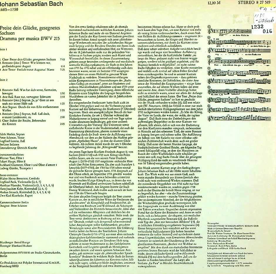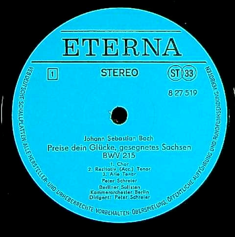 商品コード:1232-016n[ETERNA] P.シュライアー指揮ベルリン室内o. ベルリナー・ゾリステンcho. E.マティス(s) P.シュライアー(t) 他/ バッハ:カンタータB.215