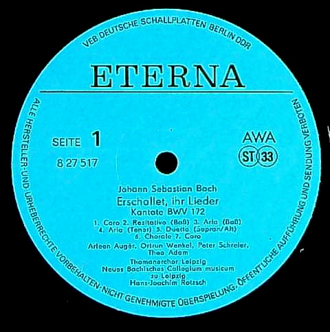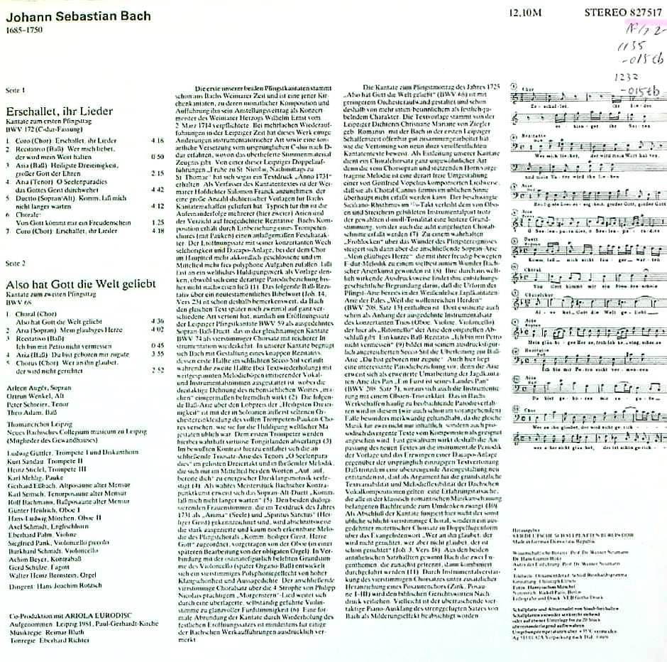 商品コード:1232-015tb[ETERNA] H.J.ロッチュ指揮新バッハ・コレギウム・ムジクム トーマス教会cho. A.オジェー(s) A.ヴェンケル(a) 他 / バッハ:カンタータ172番, 68番