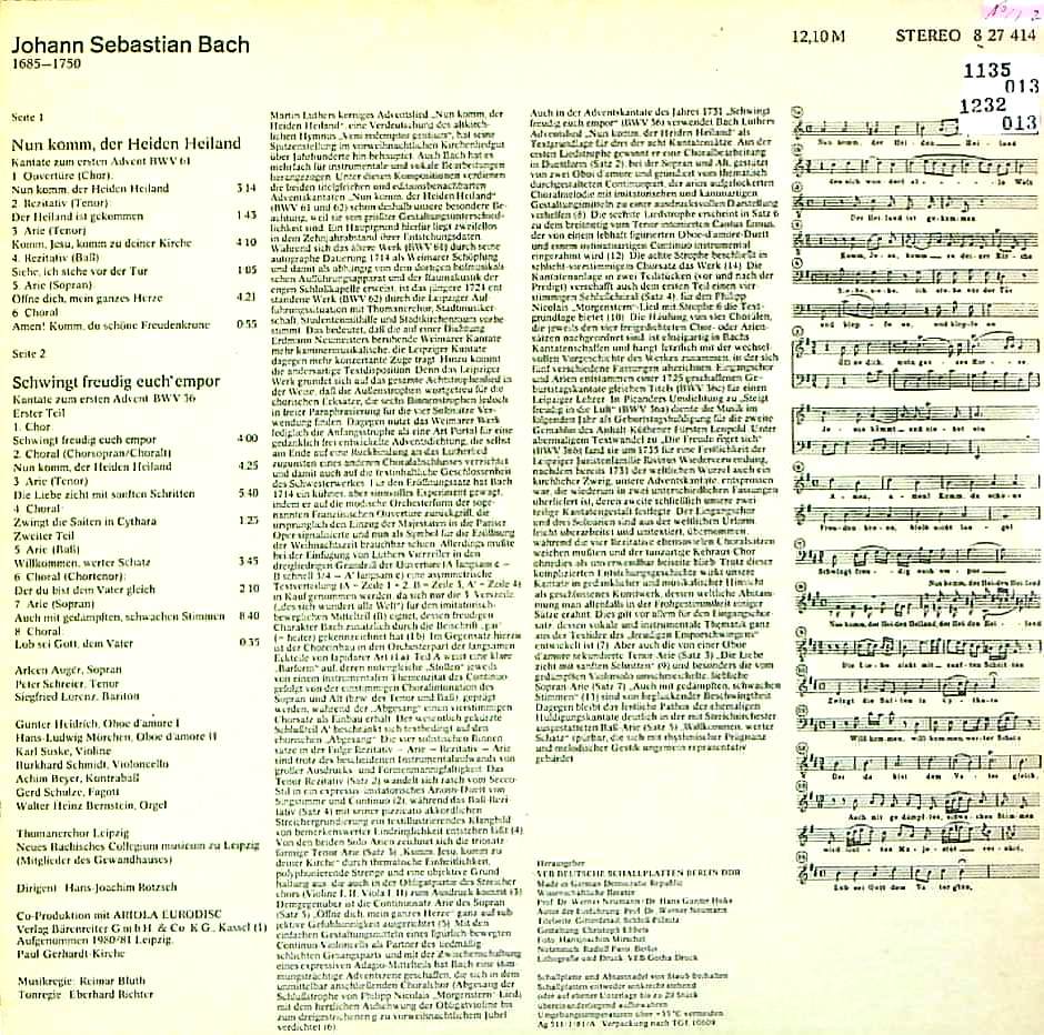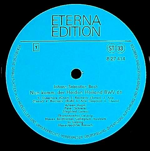 商品コード:1232-013t[ETERNA] H.J.ロッチュ指揮新バッハ・コレギウム・ムジクム トーマス教会cho. A.オジェー(s) P.シュライアー(t) 他/ バッハ:カンタータB.61, 36