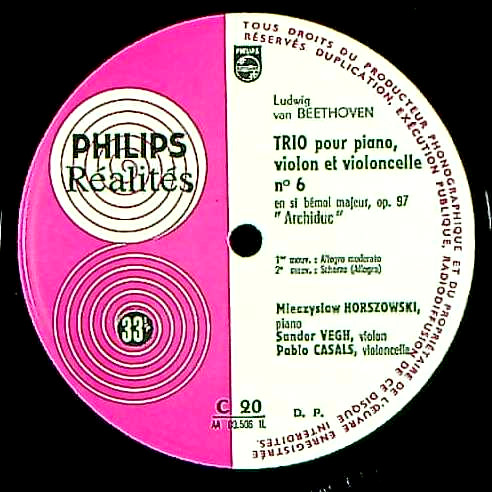 商品コード:1233-047b[PHILIPS] P.カザルス(vc) M.ホルショフスキ(pf) S.ヴェーグ(vn) / ベートーヴェン:Pfトリオ7番Op.97「大公」