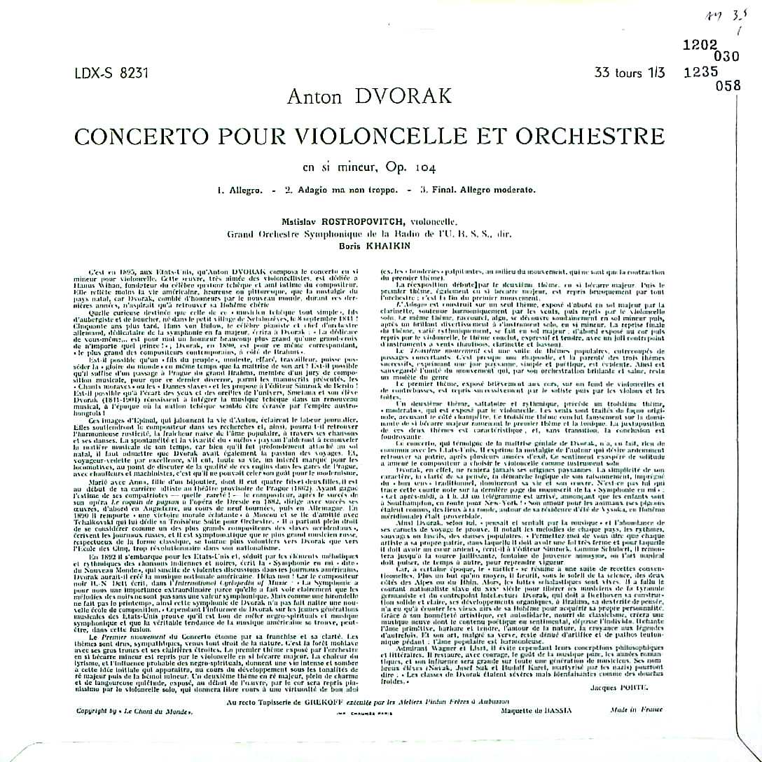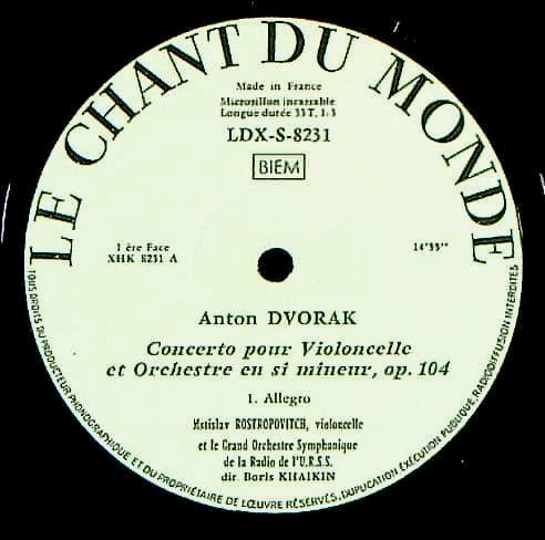 商品コード:1235-058[Le Chant de Monde] M.ロストロポーヴィチ(vc) B.ハイキン指揮ソビエト放送o. / ドヴォルザーク:Vc協奏曲Op.104