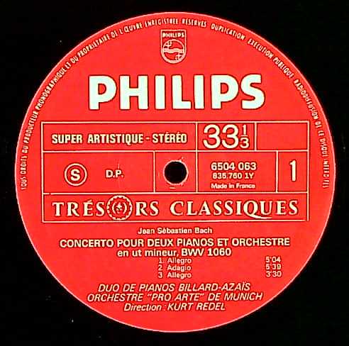 商品コード:1235-011[PHILIPS] ビラール・アゼ・デュオ(pf) K.レーデル指揮ミュンヘン・プロ・アルテo. / バッハ:2Pf協奏曲1番B.1060, 2Pf協奏曲2番B.1061
