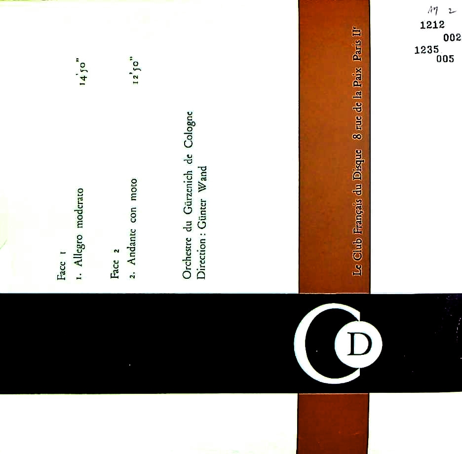 商品コード:1235-005[Le Club Français Du Disque] G.ヴァント指揮ケルン・ギュルツェニヒo. / シューベルト:交響曲8番「未完成」D.759