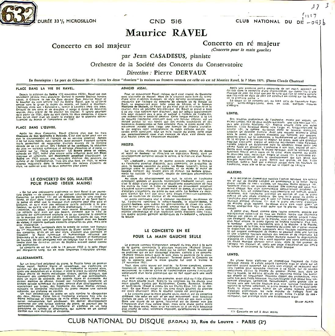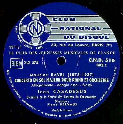 商品コード:1237-043b[Club National du Disque] J.カサドシュ(pf) P.デルヴォー指揮パリ音楽院o. / ラヴェル:Pf協奏曲, 左手のためのPf協奏曲
