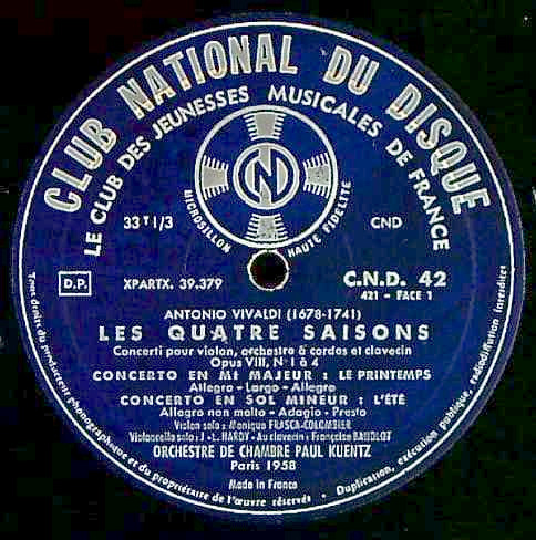 商品コード:1237-039b[Club National du Disque] P.キュンツ指揮ポール・キュンツ室内o. M.フラスカ・コロンビエ(vn) / ヴィヴァルディ:四季