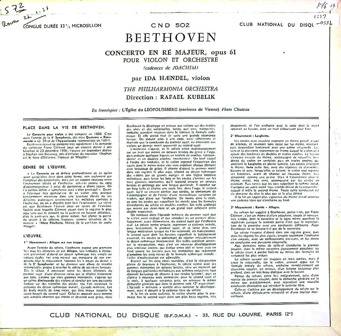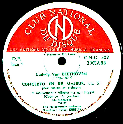 商品コード:1237-033b[Club National du Disque] I.ヘンデル(vn) R.クーベリック指揮フィルハーモニアo. / ベートーヴェン:Vn協奏曲Op.61