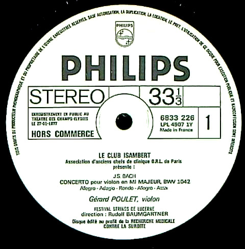 商品コード:1238-015b[PHILIPS] G.プーレ(vn) R.バウムガルトナー指揮ルツェルン祝祭o. / バッハ:Vn協奏曲2番B.1042, モーツァルト:Vn協奏曲4番K.218