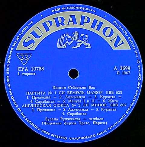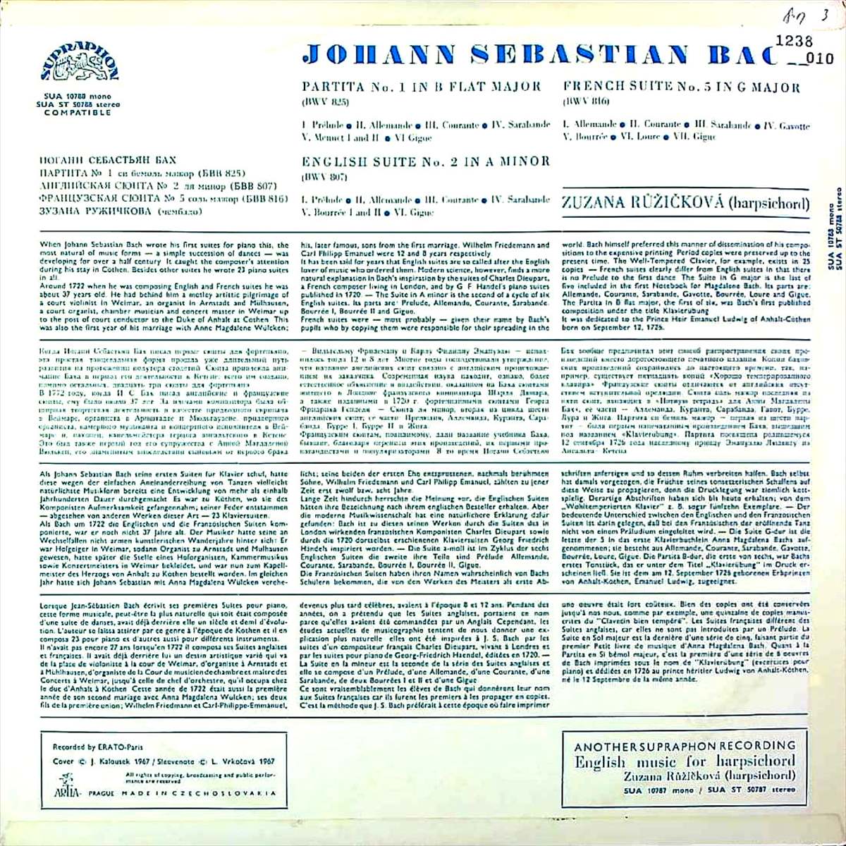 商品コード:1238-010[SUPRAPHON] Z.ルージチコヴァー(cemb) / バッハ:パルティータ1番, イギリス組曲2番, フランス組曲5番