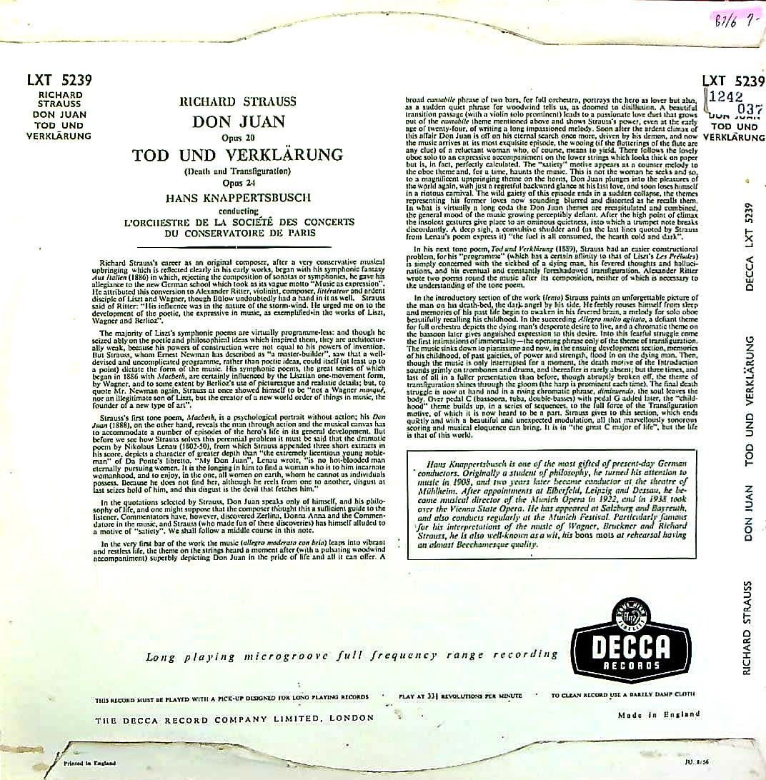 商品コード:1242-037t[DECCA] H.クナッパーツブッシュ指揮パリ音楽院o. / R.シュトラウス:交響詩「ドン・ファン」Op.20, 「死と変容」Op.24