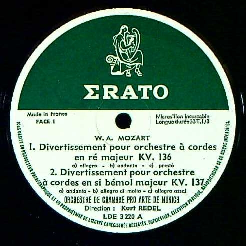 商品コード:1243-019[ERATO] K.レーデル指揮ミュンヘン・プロ・アルテ室内o. / モーツァルト:ディヴェルティメントK.136~138, アダージョとフーガK.546