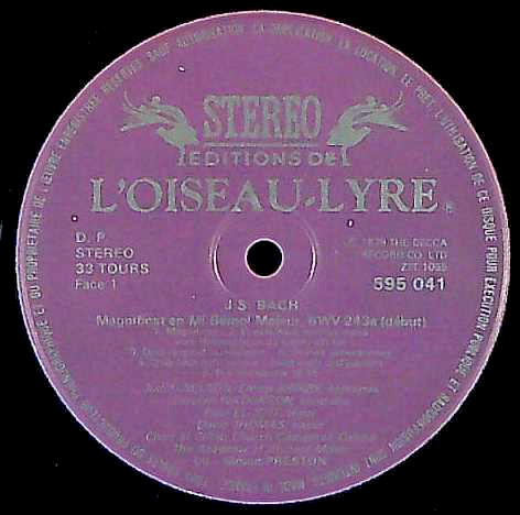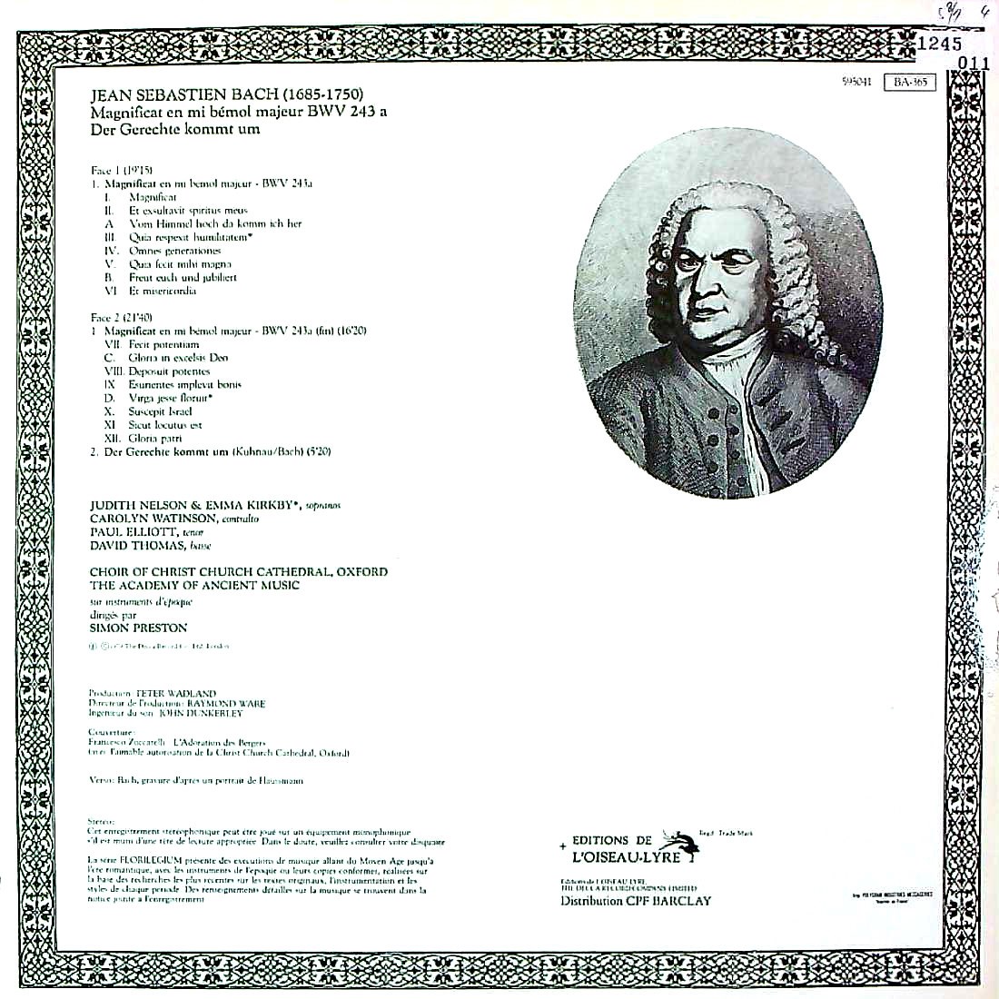 商品コード:1245-011[L'OISEAU LYRE] S.プレストン指揮エンシェント室内o. J.ネルソン E.カークビー(s) 他/ バッハ:マニフィカトB.243, モテット「義人滅ぶれども」B.deest(クーナウ原曲)