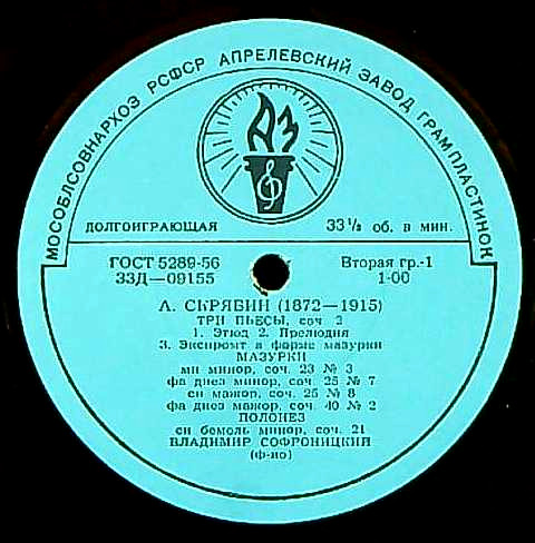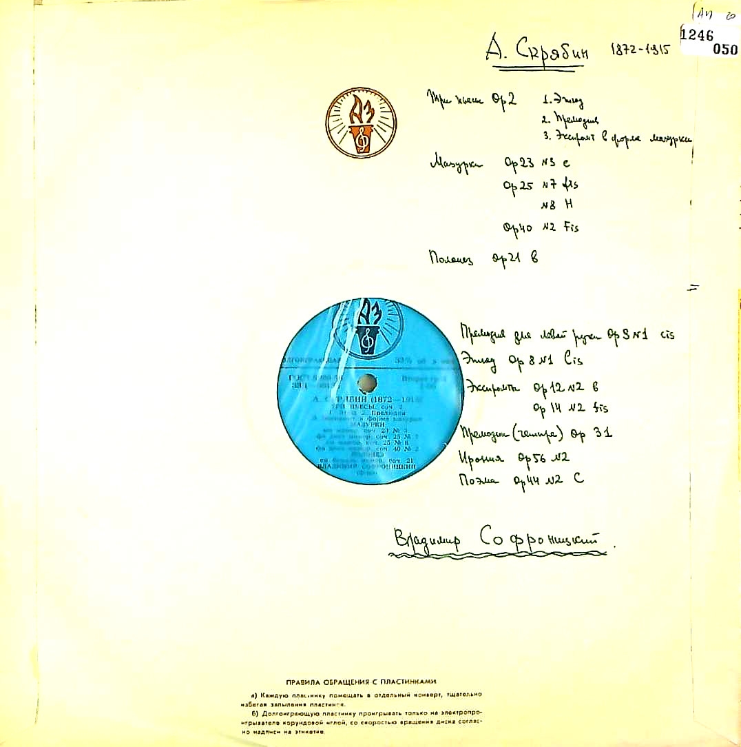 商品コード:1246-050n[MELODIYA] V.ソフロニツキー(pf) / スクリャービン:マズルカ, ポロネーズ, エチュード, 前奏曲, 詩曲 他